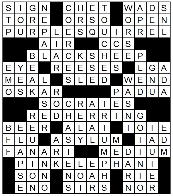 Congratulations to this month’s randomly chosen winner: Nathaniel Meyers of Carmichael, CA! The prize this month is a copy of a thematically apt novel embossed with FROM THE LIBRARY OF ARIADNE. This month I opted for a thematic tie-in to one of the theme answers (RED HERRING), and so the prize is one of my favorite mystery novels,The Murder of Roger Ackroyd by Agatha Christie. (I don’t think it’s a spoiler to say a mystery novel features some red herrings.) Congratulations, Nathaniel!